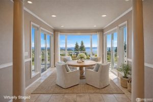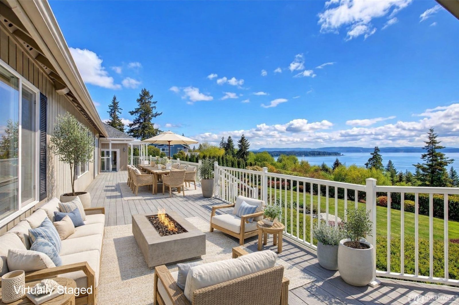Panoramic views of Mt. Baker, the North Cascades, and Port Susan define this rare rambler.